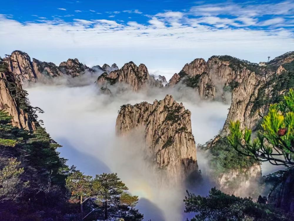 DAY2: 早根據天氣,可觀(guān)黃山日出,(以山上具體天氣爲準)之後(hòu)遊北海景區--獅子峰、清涼台、猴子觀海、散花塢、夢筆(bǐ)生花諸景,觀賞以“黑虎、連理、龍爪、探海”等名松彙聚而聞名的始信峰,至後山雲谷寺下山。(也可以從後山雲谷寺上山,前山玉屏樓下山)換乘景交車(chē)至湯口,結束愉快行程!