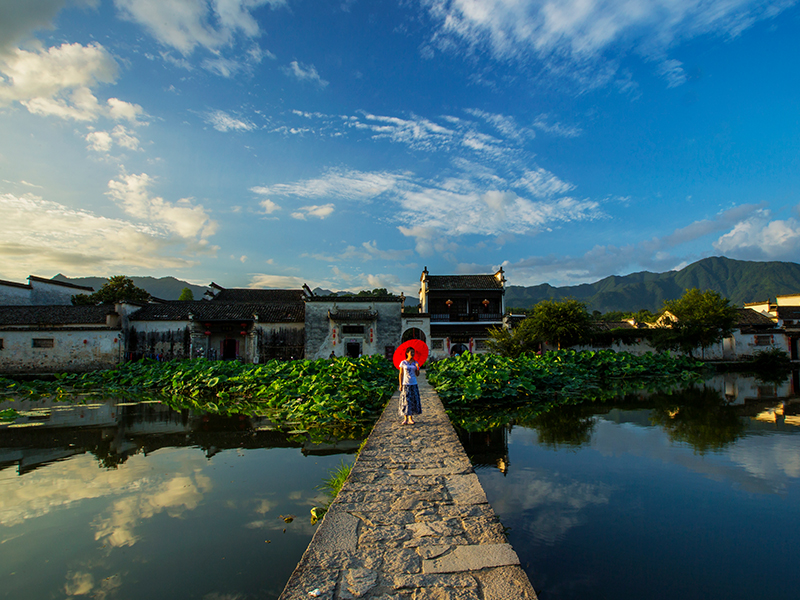 上午:【宏村——山環水繞畫裏鄉村】宏村的美,是凝重的,也是詩意的。粉牆黛瓦的古樓,小橋人家倒映在湖上,水邊(biān)潑墨的深宅大院,走在青石闆路上,像一張張古畫,玉帶一般的護城河水碧綠清透,環繞著(zhe)整個村莊。引來許多人駐足寫生,給古村落平添一道風景線。月沼呈半月型,水波不驚,水面如鏡。四周的古徽民居映在水中,斑駁乏灰的粉壁,高高的馬頭牆,在月沼裏微微蕩漾,叫人思緒幽幽。春天正是油菜花的季節,金黃的油菜花與粉牆黛瓦的古村獨有一番滋味。
